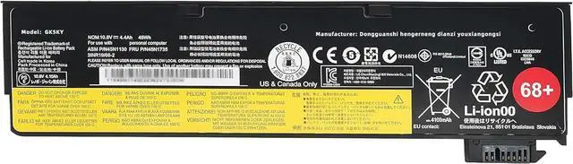 SPECIFICATION : Model Name:45N1130 68+ Voltage: 10.8V / Capacity: 48Wh 4400mAh 6-Cells Grade A cells ensure fast charges and low power consumption; Built-in circuit protection ensures both safety and stability. Condition: 100% New; Battery life: More than 1000 cycles.