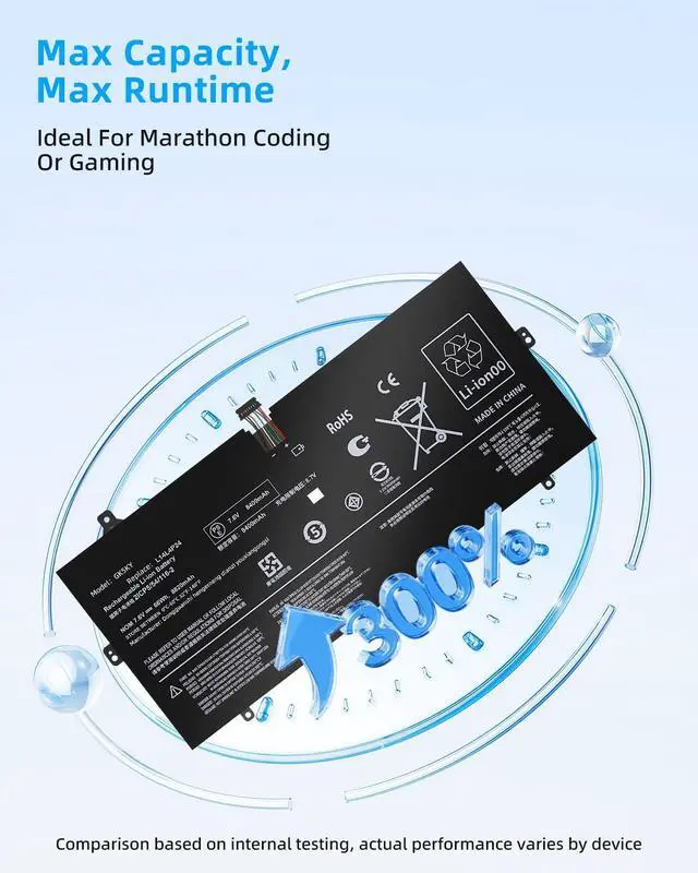 SPECIFICATION : Model Name: L14M4P24 Voltage: 7.6V; Capacity: 66Wh/8400mAh 4-Cells; Grade A cells ensure fast charges and low power consumption; Built-in circuit protection ensures both safety and stability. Condition: 100% New; Battery life: More than 1000 cycles.
