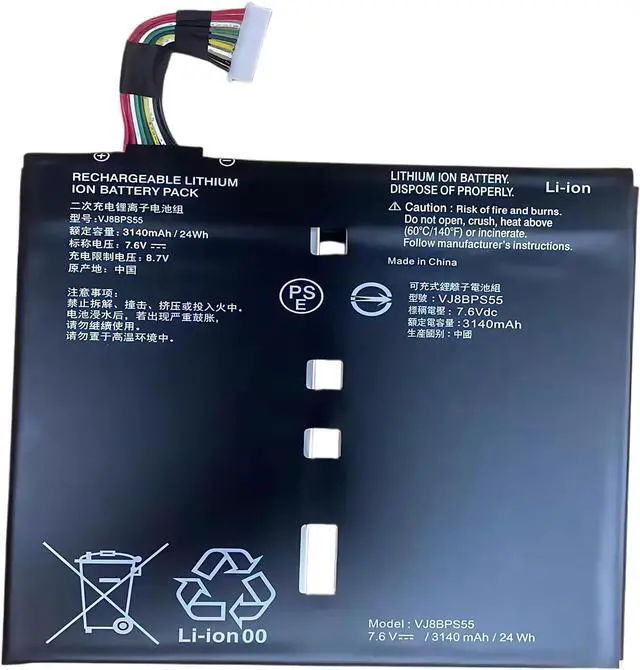 SPECIFICATION : Model Name: VJ8BPS55 Voltage: 7.6V; Capacity: 24Wh/3140mAh; Cells: 4-cell; Grade A cells ensure fast charges and low power consumption; Built-in circuit protection ensures both safety and stability. Condition: 100% New; Battery life: More than 1000 cycles.