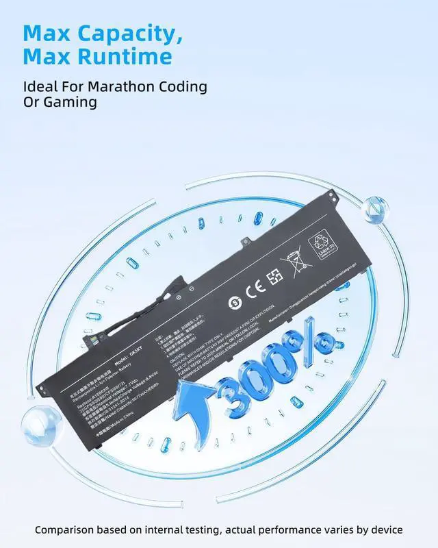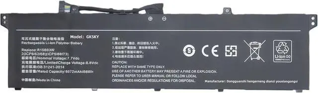SPECIFICATION : Model Name: R15B03W Voltage: 7.7V Capacity:8572mAh 66Wh Grade A cells ensure fast charges and low power consumption; Built-in circuit protection ensures both safety and stability. Condition: 100% New; Battery life: More than 1000 cycles.