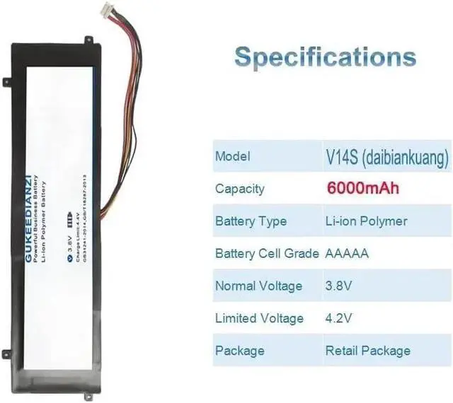 Compatible Models This is an independent lithium polymer battery that is not sold with the product. Battery Model: V14S (10 PIN 8 Wire)(With frame). This Replacement battery Compatible for DERE V14s V14 Air Notebook Laptop Battery 10 PIN 8 Wire Plug. Before purchasing, please ensure that it matches your device model.