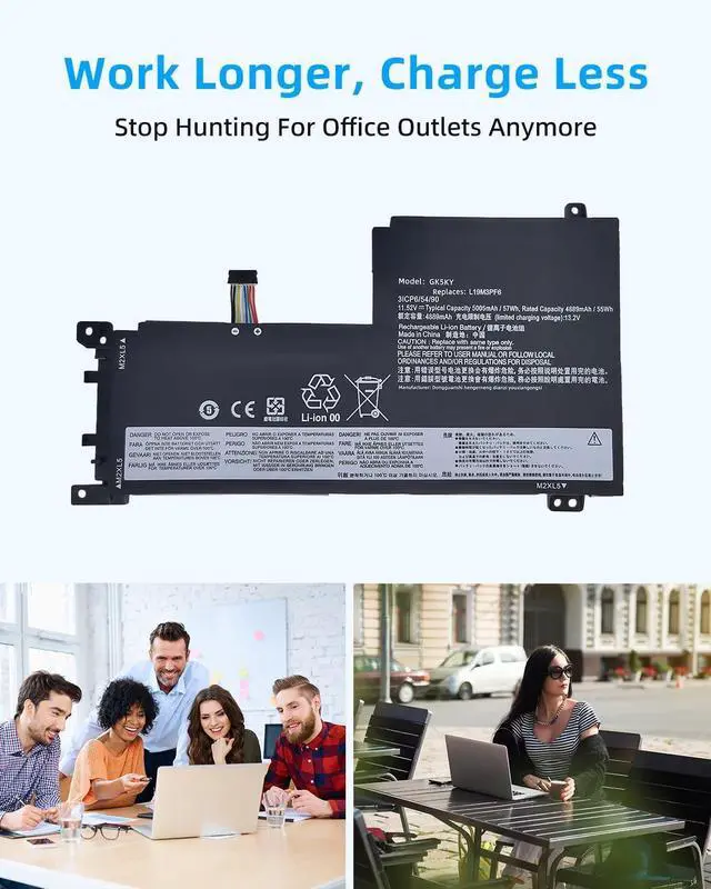 • SPECIFICATION : Model Name:L19L4PF1 Voltage: 11.55V. Capacity: 57Wh 4770mAh; Grade A cells ensure fast charges and low power consumption; Built-in circuit protection ensures both safety and stability. Condition: 100% New; Battery life: More than 1000 cycles.