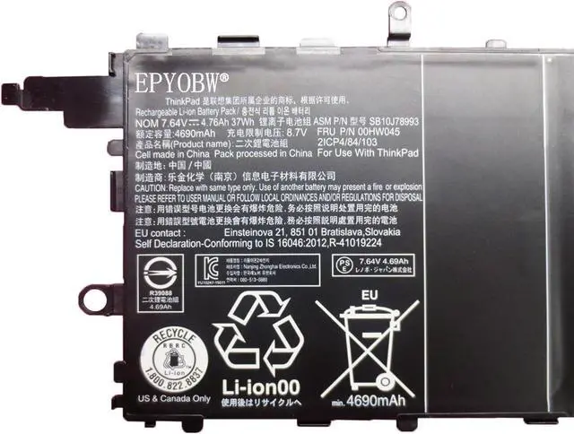 Specifications Battery Model: 00HW045 / Voltage: 7.5V / Capacity: 37 Wh 4800mAh 2-cell / Color: White / Condition: Brand New.