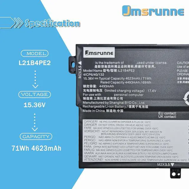 L21B4PE2 Specifications Model: L21B4PE2 / Voltage: 15.36V / Capacity: 71Wh 4623mAh /Battery type: Li-ion /Battery life: Up to 1000 recharge cycles over the life of the battery. Also comes with installation tools.Purchasing Note: Due to the complexity of laptop battery models, you may not be able to accurately determine the model you need to purchase,Please open the back cover of the laptop to confirm the original battery model number