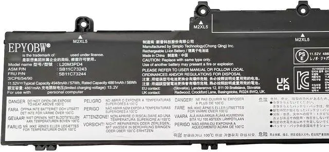 EPYOBW Promise All EPYOBW's batteries are certificated by UL/CE/FCC/RoHS. Our batteries are tested by strict quality control standards to ensure that the capacity is true, stable current, low self-discharge.And we also have short circuit, overheat, and overload protections. We are confident in the performance of replacement batteries and professional service.