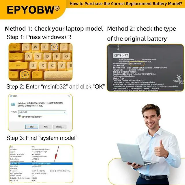 Purchase SkillsPlease open the back cover of the laptop before ordering and make sure that the original battery model is consistent with the listing. After getting the battery, please install the battery correctly, make sure that the battery connector is firmly connected to the laptop motherboard, and use the original charger to charge the laptop.Discharge the new battery to 5% (not 0%), then charge and cycle 3-4 times to wake up the new battery.