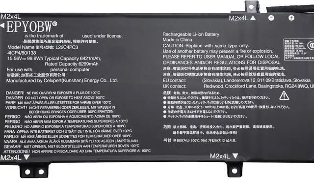 Specifications Battery Model: L22C4PC3 / Voltage: 15.56V / Capacity: 99.9Wh 6421mAh 4-Cell / Color: Black / Condition: Brand New.