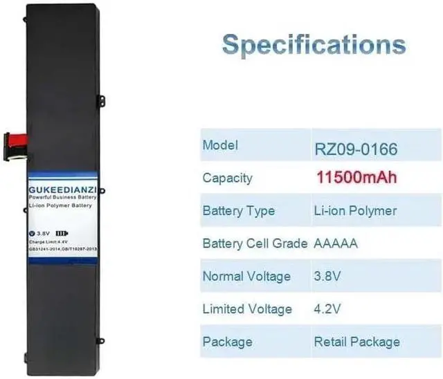Compatible Models This is an independent lithium polymer battery that is not sold with the product. Battery Model: RZ09-0166. This Replacement battery Compatible for Razer Blade Pro 17.3" 2017 RZ09-01663E52 RZ09-01662E53-R3U1 RZ09-01663E53-R3U1. Before purchasing, please ensure that it matches your device model.