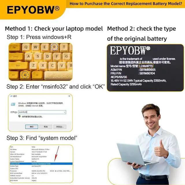 Purchase SkillsPlease open the back cover of the laptop before ordering and make sure that the original battery model is consistent with the listing. After getting the battery, please install the battery correctly, make sure that the battery connector is firmly connected to the laptop motherboard, and use the original charger to charge the laptop.Discharge the new battery to 5% (not 0%), then charge and cycle 3-95 times to wake up the new battery.