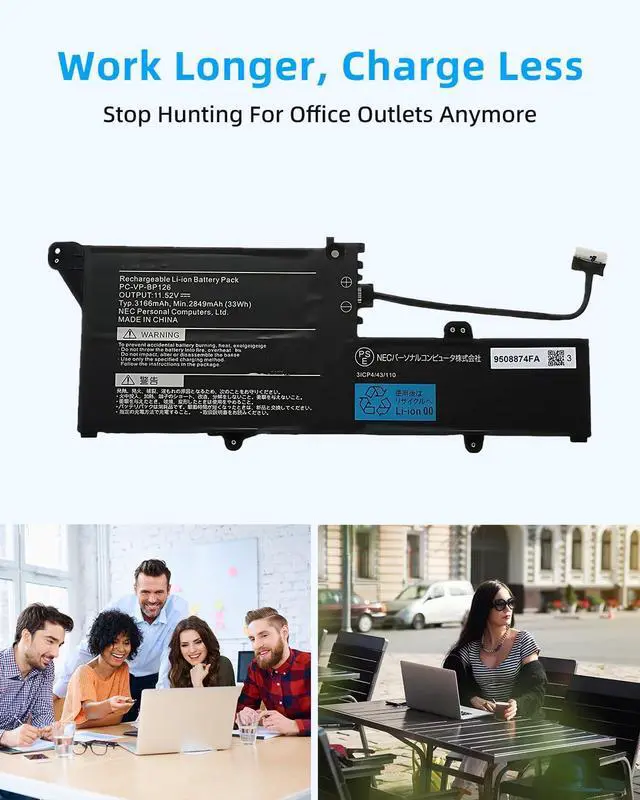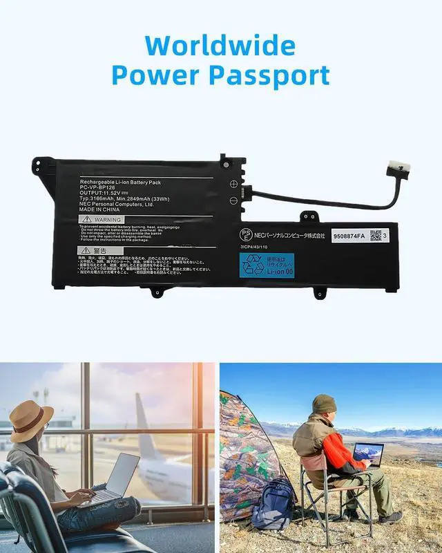 1Power Wilderness Office2Marathon Presentations3Airport Power4Productive Mobility Compatible Laptop Models For:PC-VJE15HGG5 PC_NM550MA PC-VP-BP126Compatible Laptop Models For:For NEC LAVIE Note Mobile NM150/MANM550/MA Direct NM (2019)PCVJE15HGG5For NEC PC-VP-BP126 3ICP4/43/110ForNEC VersaPro VKT13H-4 PCVKT13HZG4Compatible Laptop Models For:For NEC PC-VP-BP126 3ICP4/43/110 Compatible Laptop Models For:ForNEC VersaPro VKT13H-4 PCVKT13HZG4 Is this battery compatible with my laptop?