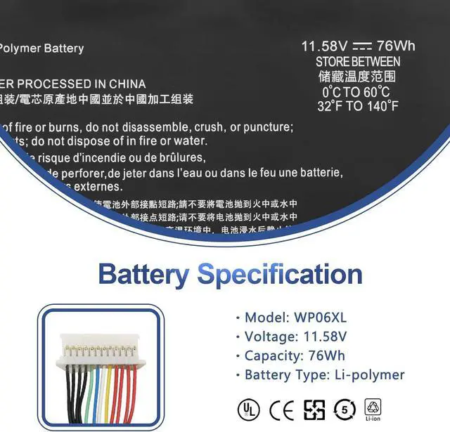 Replace Part NumberFit for WP06XL HSTNN-IB9Z M73470-005 M64306-171