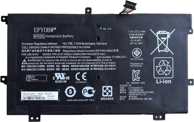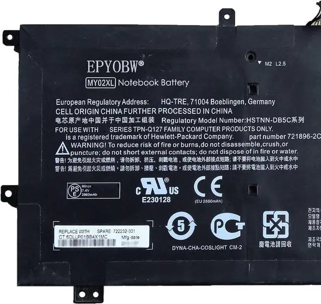 Replace Part NumberMY02XL MY02021XL-PL TPN-Q127 21CP3/97/91 2ICP3/97/91 721896-1B1 721896-1C1 721896-2B1 721896-2C1 722232-001 HSTNN-DB5C HTSNN-IB5C