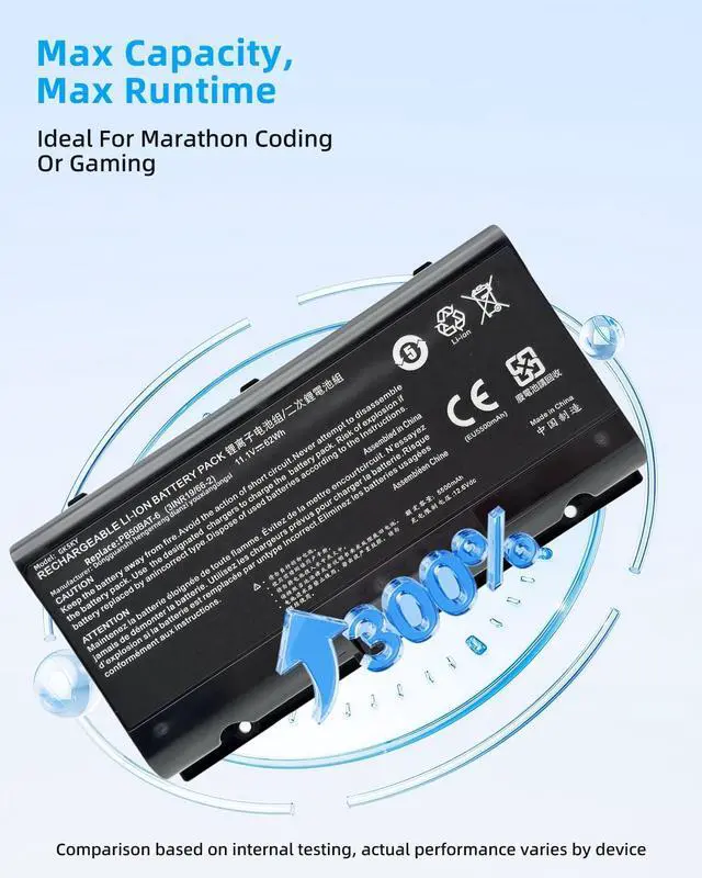 SPECIFICATION : Model Name:PB50BAT-6 Capacity:62Wh Voltage: 11.1V. Grade A cells ensure fast charges and low power consumption; Built-in circuit protection ensures both safety and stability. Condition: 100% New; Battery life: More than 1000 cycles.
