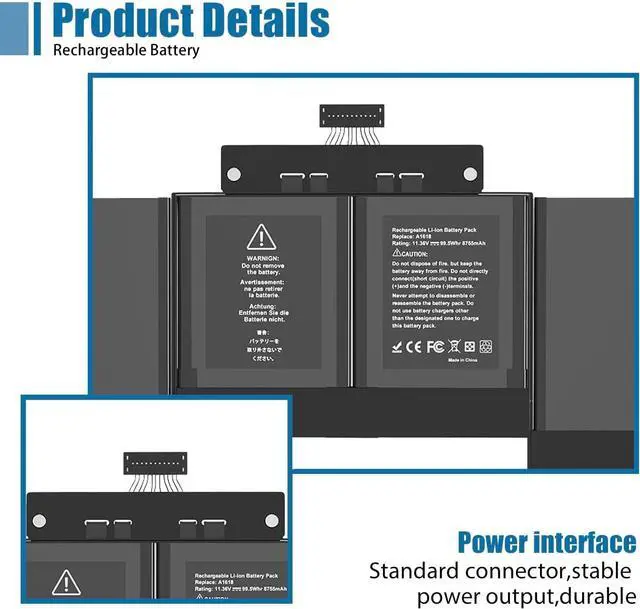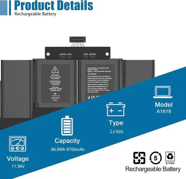 SpecificationsModel: A1618 / Type: Li-ion / Voltage: 11.36 V /Capacity: 8755 Wh