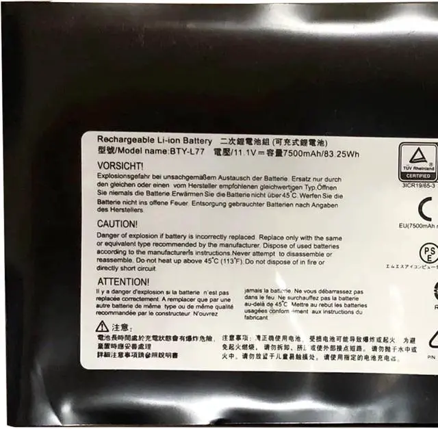 SpecificationsBattery Model: BTY-L77 // Voltage: 11.1V // Capacity: 83.25Wh 7500mAh // Color: Black // Condition: Brand New.