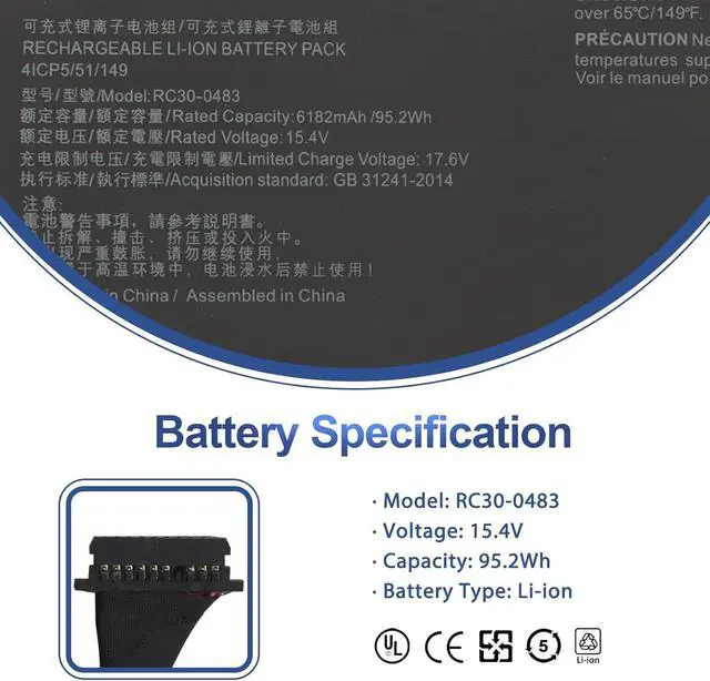 SpecificationVoltage:15.4V. Capacity: 95.2Wh 6182mAh. Battery Type: Li-Polymer. Condition: Brand new, from durable materials, top circuit boards and smart chip