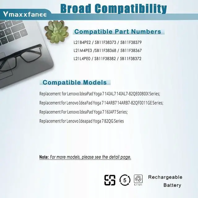 Compatible laptop ModelsReplacement for Lenovo IdeaPad Yoga 7 14IAL7 14IAL7-82QE0080IX Series; Replacement for Lenovo IdeaPad Yoga 7 14ARB7 14ARB7-82QF0011GE Series; Replacement For Lenovo IdeaPad Yoga 7 16IAP7 Series; Replacement for Lenovo Ideapad Yoga 7 82QG Series