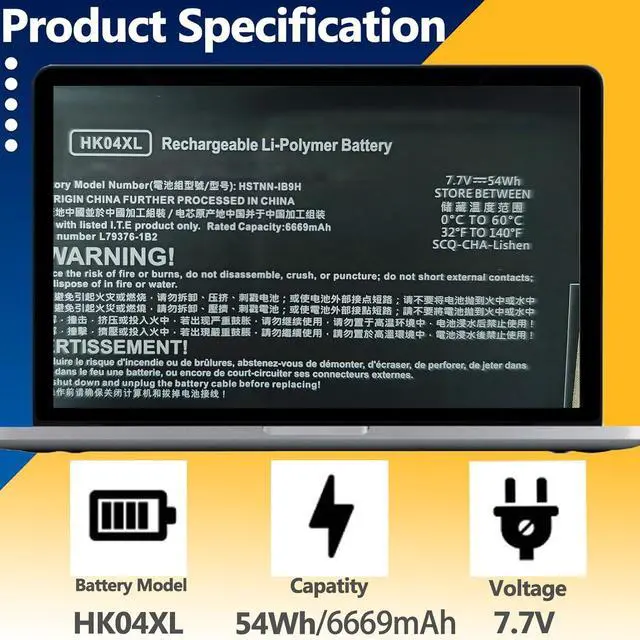 Compatible C/NHK04XL, HK04054XL,HSTNN-IB9H ,L82391-007, L82391-006, L82391-005,L79376-1B1, L79376-1B2