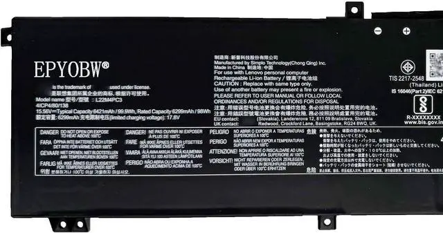 Specifications Battery Model: L22M4PC3 / Voltage: 15.56V / Capacity: 99.9Wh 6421mAh 4-Cell / Color: Black / Condition: Brand New.