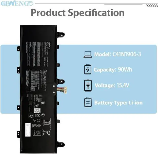 Specifications Model: C41N1906-3 Capatity: 90Wh Voltage:15.4V Color: Black Battery type: Rechargeable Li-ion Battery Condition: 100% brand New from Manufacturer.
