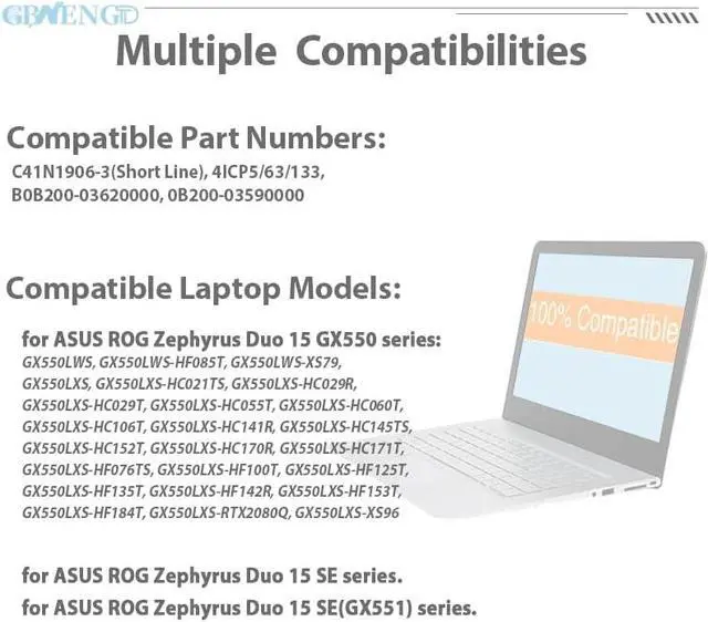 Compatible Model for ASUS ROG Zephyrus Duo 15 GX550 series for ASUS ROG Zephyrus Duo 15 SE series. for ASUS ROG Zephyrus Duo 15 SE(GX551) series.