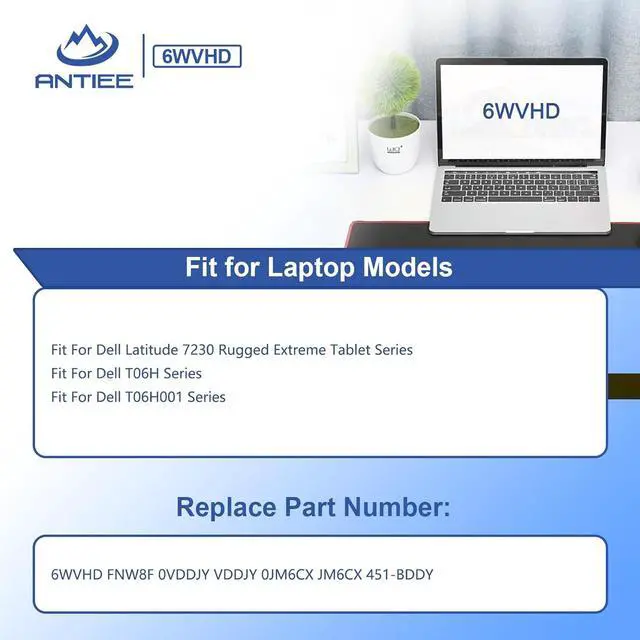 Compatible Laptop ModelsFit for Dell Latitude 7230 Rugged Extreme Tablet Series; for Dell T06H T06H001 Series