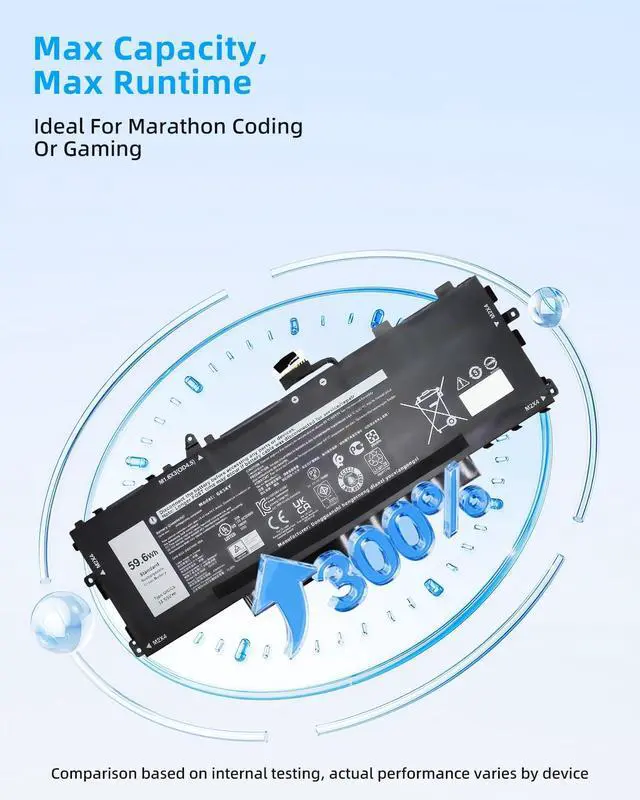 SPECIFICATION : Model Name:GHJC5 Voltage: 15.55V. Capacity: 59.6Wh/4900mAh/4-Cell.Grade A cells ensure fast charges and low power consumption; Built-in circuit protection ensures both safety and stability. Condition: 100% New; Battery life: More than 1000 cycles.