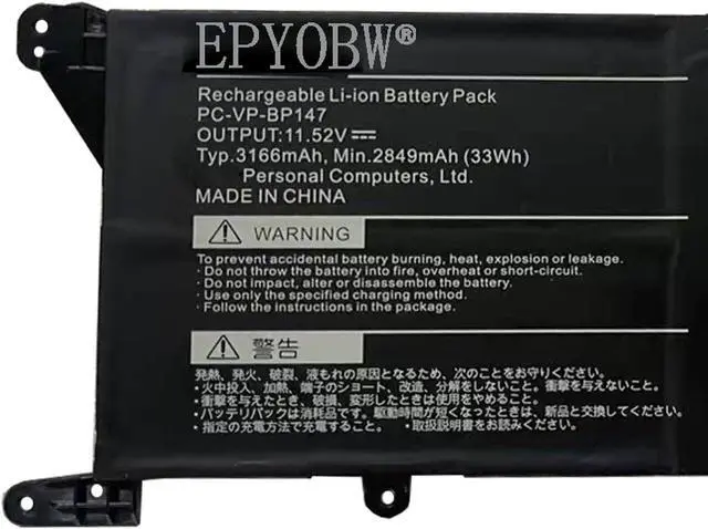 SpecificationsBattery Model: PC-VP-BP147 / Voltage: 11.52V / Capacity: 33Wh 2849mAh / Color: Black / Condition: Brand New.
