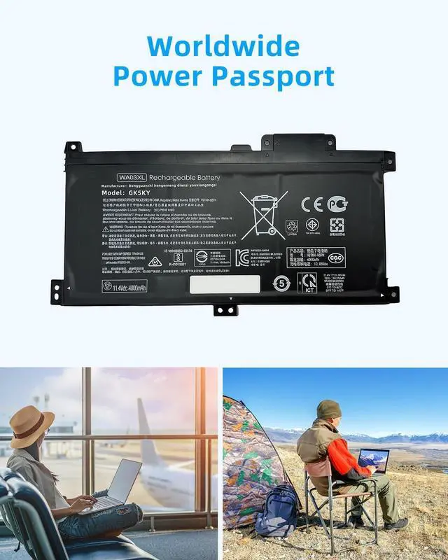COMPATIBLE P/N: WA03XL / WAO3XL /HSTNN-UB7H / TPN-W126 / 916367-541 / HSTNN-LB7T / 916367-421 / 916812-055 / 916812-855.