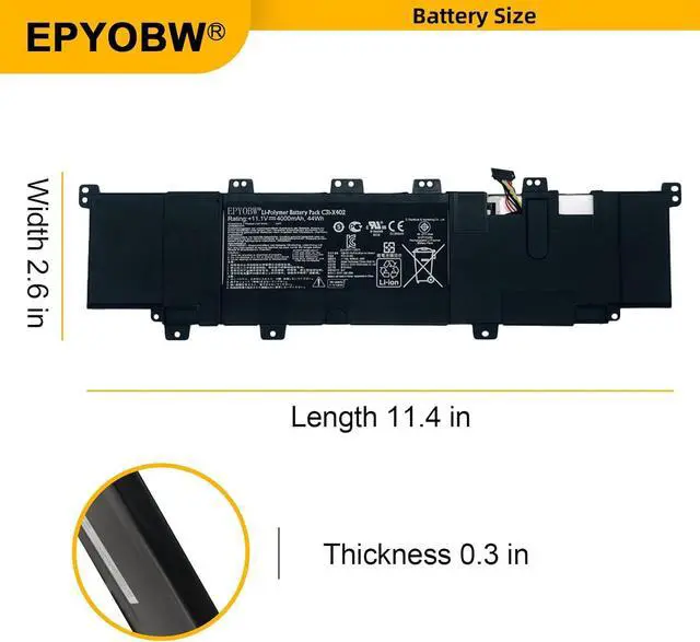 Specifications Battery Model: C31-X402/ Voltage: 11.1V / Capacity: 44Wh 4000mAh 6-Cell / Color: Black / Condition: Brand New.