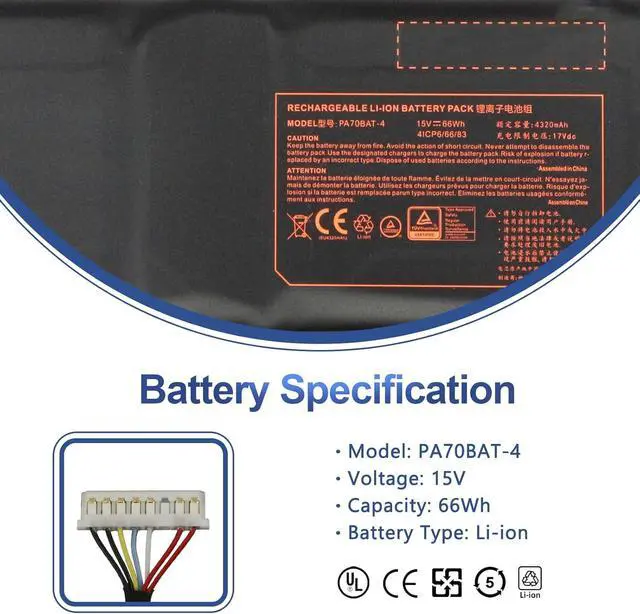 SpecificationVoltage: 15V. Capacity: 66Wh/4320mAh. Battery Type: Li-Polymer. Condition: Brand new, from durable materials, top circuit boards and smart chip