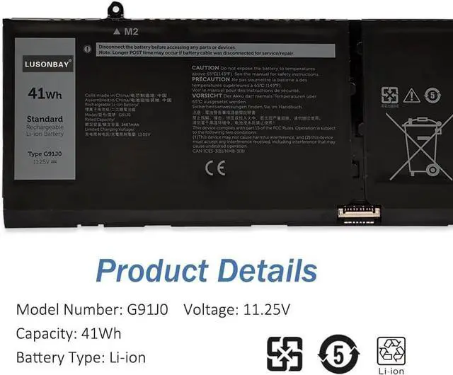 True Charging Capacity That LastsG91J0 battery for laptop/notebook, laptop battery specifications Capacity: 41Wh Voltage:11.25V Battery Type: Li-ion Condition:100% Brand New Cell: Grade "A++" Cell. Each battery will undergo multiple strict test processes before shipping, we strive to bring the highest quality battery to each customer and give your laptop a new lease of life.
