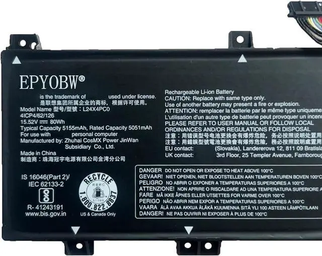 Specifications Battery Model: L24X4PC0 / Voltage: 15.52V / Capacity: 80Wh 5155mAh 4-cell / Color: Black / Condition: Brand New.