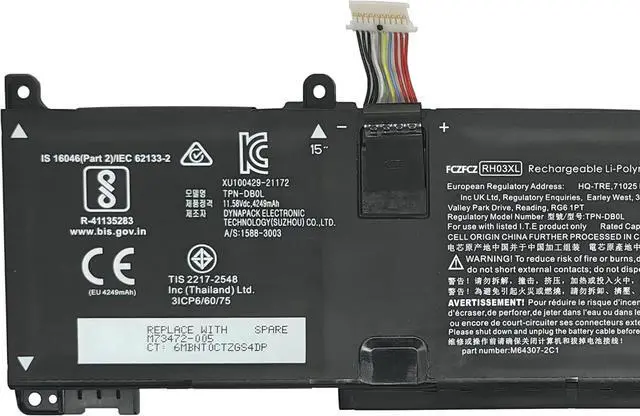 Replacement for Part NumberRH03XL RHO3XL RH03045XL M01524-171 M01524-172 M01524-1D1 M01524-1D2 M01524-2B1 M01524-2B2 M01524-2C1 M01524-2C2 M01524-541 M01524-542 M01524-AC1 M01524-AC2 M02027-002 M02027-005 M64307-171 M75017-1d1 HSTNN-DB0B HSTNN-IB9P HSTNN-IB9Q HSTNN-OB1T HSTNN-UB7X TPN-DB0B TPN-IB0A TPN-Q517