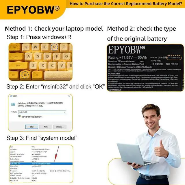 Purchase SkillsPlease open the back cover of the laptop before ordering and make sure that the original battery model is consistent with the listing. After getting the battery, please install the battery correctly, make sure that the battery connector is firmly connected to the laptop motherboard, and use the original charger to charge the laptop.Discharge the new battery to 5% (not 0%), then charge and cycle 3-95 times to wake up the new battery.