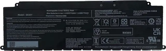 SPECIFICATION : Model Name:PS0104UA1BRS-1 Voltage: 15.4V / Capacity: 53Wh 3450mAh 4-Cell Grade A cells ensure fast charges and low power consumption; Built-in circuit protection ensures both safety and stability. Condition: 100% New; Battery life: More than 1000 cycles.