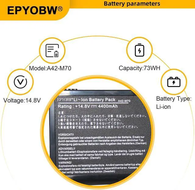 Specifications Battery Model: A42-M70/ Voltage: 14.8V / Capacity: 73Wh 5200mAh 8-Cell / Color: Black / Condition: Brand New.