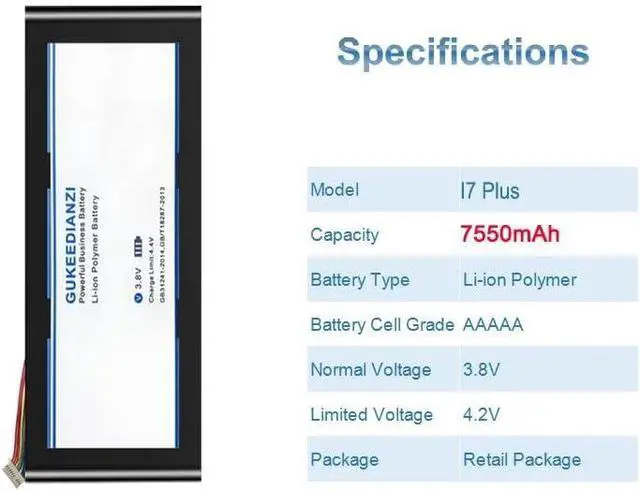 High Capacity & Long Standby Capacity: 7550mAh. More energy storage,Brand New 0 Cycles,longer standby time.