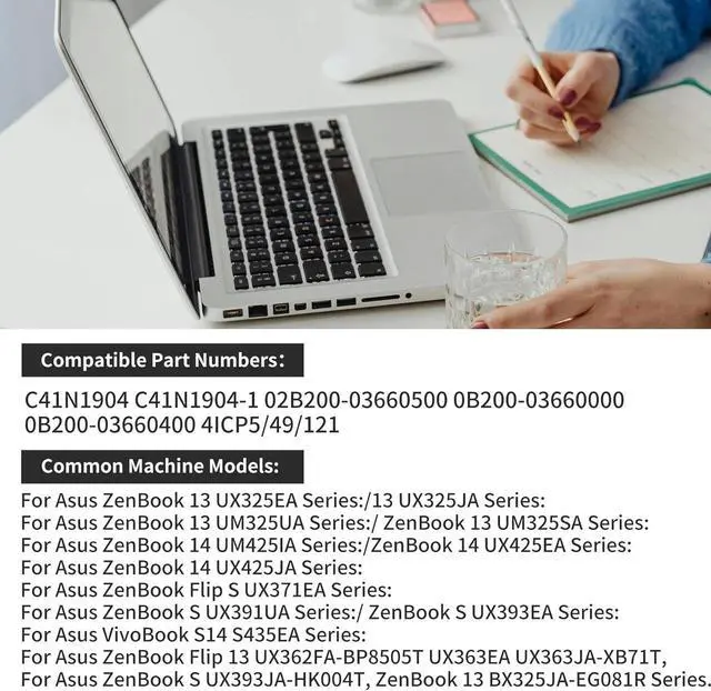 Perfect Battery Replacement notebook battery perfect fitFor Asus ZenBook 13 UX325EA Series:For Asus ZenBook 13 UX325JA Series:For Asus ZenBook 13 UM325UA Series:For Asus ZenBook 13 UM325SA Series:For Asus ZenBook 14 UM425IA Series:For Asus ZenBook 14 UX425EA Series:For Asus ZenBook 14 UX425JA Series:For Asus ZenBook Flip S UX371EA Series:For Asus ZenBook S UX391UA Series:For Asus ZenBook S UX393EA Series:For Asus VivoBook S14 S435EA Series