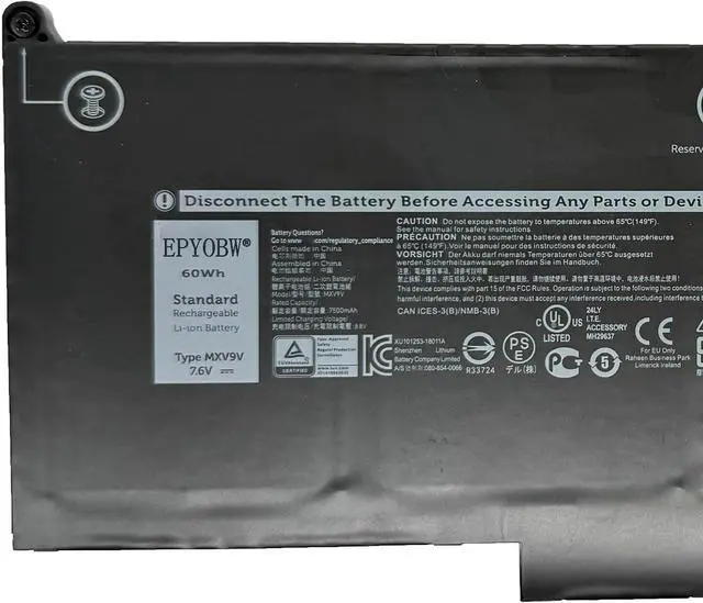 SpecificationsBattery Model: MXV9V / Voltage: 7.6V / Capacity: 60Wh 7500mAh 4-Cell / Color: Black / Condition: Brand New.