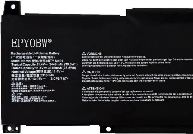 Specifications Battery Model: BTY-M494White interface cable) / Voltage: 11.4V / Capacity: 39.3Wh 3448mAh / Color: Black / Condition: Brand New.