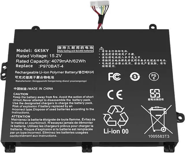 SPECIFICATION : Model Name:P970BAT-4 Voltage: 15.2V. Capacity: 62Wh. Grade A cells ensure fast charges and low power consumption; Built-in circuit protection ensures both safety and stability. Condition: 100% New; Battery life: More than 1000 cycles.