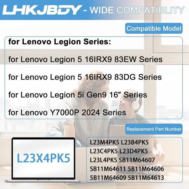 Compatible Laptop Models: L23X4PK5 battery for Lenovo Legion 5 16IRX9 83EW Series; fit for Lenovo Legion 5 16IRX9 83DG Series; fit for Lenovo Legion 5i Gen9 16 Series;fit for Lenovo Y7000P 2024 Series
