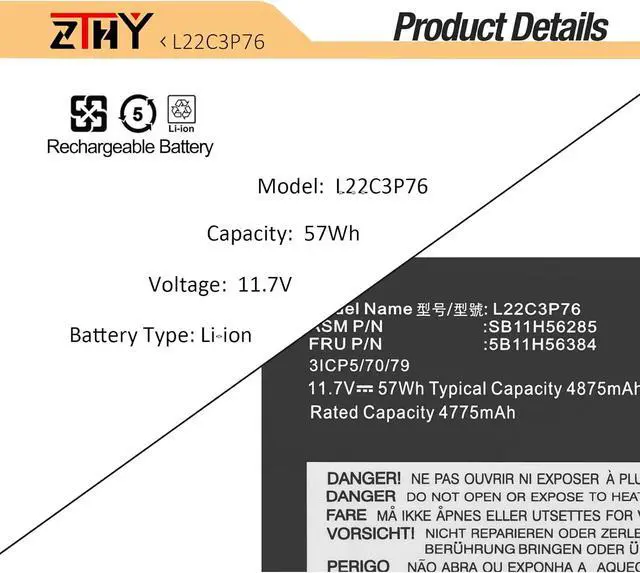Compatible Part Number: L22B3P73 SB11H56287 5B11H56386 L22C3P76 SB11H56285 5B11H56384 L22D3P77 L22D3P78 SB11H56286 5B11H56385 L22M3P77 SB11H56284 5B11H56383