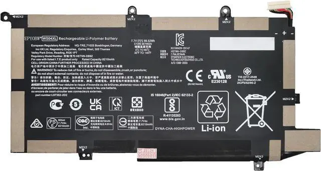 Specifications Battery Model: WS04XL / Voltage: 7.7V / Capacity: 66.52Wh 8210mAh 4-Cell / Color: Black / Condition: Brand New.