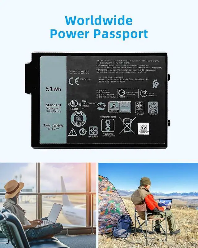 SPECIFICATION : Model Name: 7WNW1 Voltage: 11.4V Capacity: 51Wh/ 4342mAh 6-cell; Grade A cells ensure fast charges and low power consumption; Built-in circuit protection ensures both safety and stability. Condition: 100% New; Battery life: More than 1000 cycles.