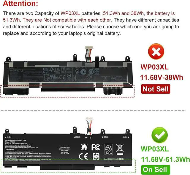 COMPATIBLE P/N : WP03XL M64304-1D1 M73466-005 M64305-421 M64304-422 M64304-AC1 L78555-005 HSTNN-LB8W HSTNN-OB2J HSTNN-LB9C HSTNN-IB9Y 31CP6/60/75