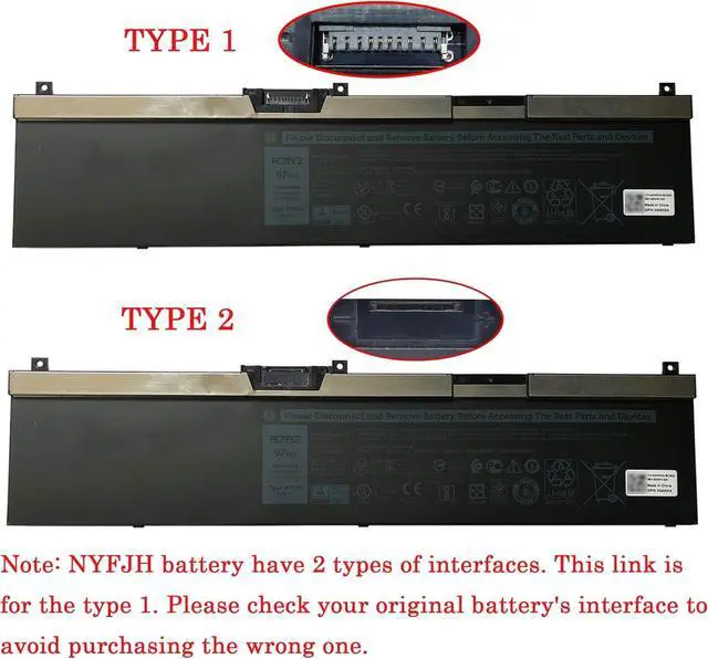 Replacement for Part Number0YAX0 0WNRC 5TF10 7M0T6 GHXKY RY3F9 0RY3F9 (Note: NYFJH batteries have two types of connectors. Please confirm your original battery is the same as the picture before ordering.)