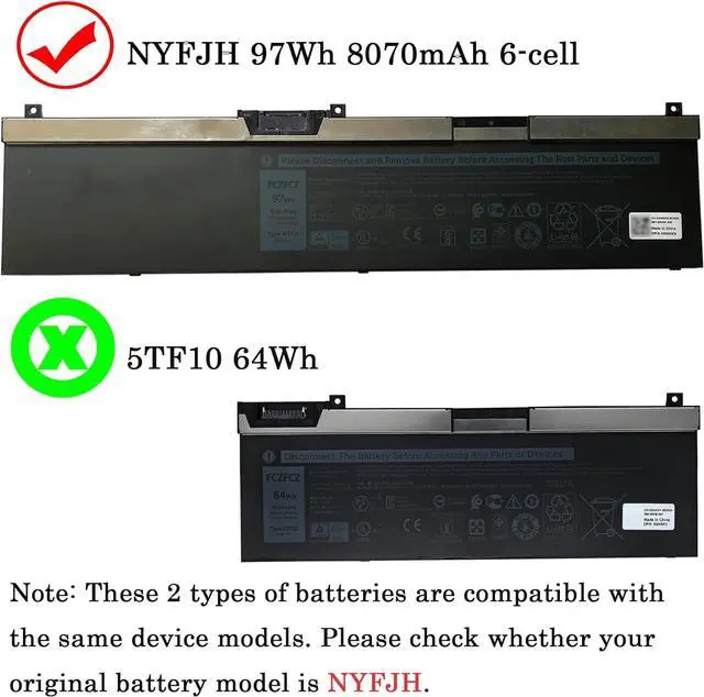 SpecificationsBattery Model: NYFJH // Voltage:11.4V // Capacity:97Wh 8070mAh 6-cell // Color:Black // Condition:Brand New.