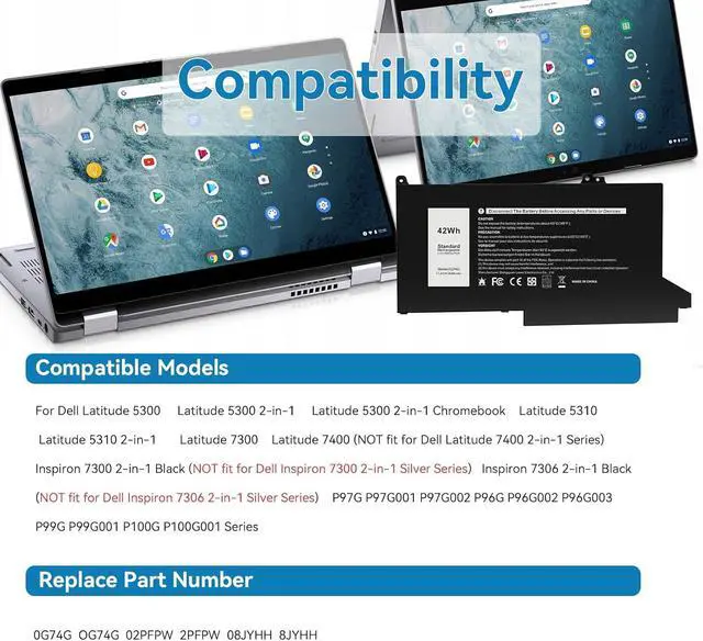 COMPATIBLE MODELS: Fit for Dell Latitude 5300 // Latitude 5300 2-in-1 // Latitude 5300 2-in-1 Chromebook // Latitude 5310 // Latitude 5310 2-in-1 // Latitude 7300 // Latitude 7400 (NOT fit for Dell Latitude 7400 2-in-1 Series) // Inspiron 7300 2-in-1 Black (NOT fit for Dell Inspiron 7300 2-in-1 Silver Series) // Inspiron 7306 2-in-1 Black (NOT fit for Dell Inspiron 7306 2-in-1 Silver Series) // P97G P97G001 P97G002 P96G P96G002 P96G003 P99G P99G001 P100G P100G001 Series.